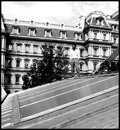 The third installation is a five-panel, building-integrated solar hot water system on the White House cabana next to the presidential pool and spa. This system is integrated into a terne-coated, standing-seam copper roof. The inset design of the panels provides a relatively flush profile (see photo). Hot water produced by this system heats a hot tub and shower, with any extra energy going into the outdoor pool. The absorber plates for these panels were made by SunEarth, but the rest of the system was site-manufactured for better integration with the roof.